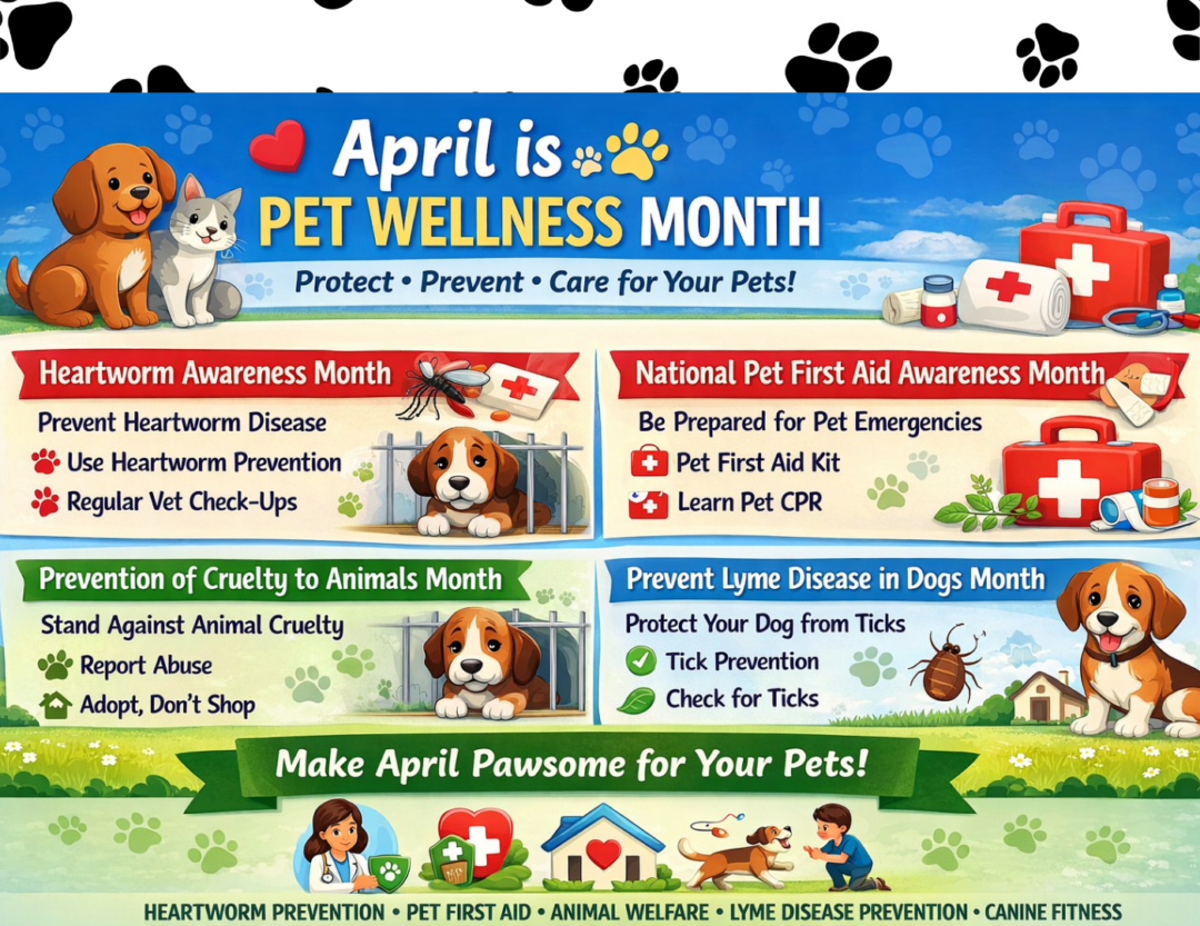 April is the perfect time to prioritize your pet’s health, safety, and happiness. From preventing diseases to promoting fitness and compassion, every small step you take makes a big difference.